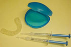 ホームホワイトニングは歯型を採りマウストレーを作り、その中にホワイトニングジェルを入れて1日2時間装着します。約2週間続けます。